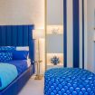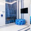 L'appartamento vanta due spaziose camere da letto matrimoniali, ognuna delle quali è stata progettata per garantire il massimo comfort. Pareti e pavimenti chiari, si fondono, nelle mille tonalità del blu, in un raffinato gioco di colori e di design, con rivestimenti e tessuti pregiati, per creare un'atmosfera elegante ed esclusiva.