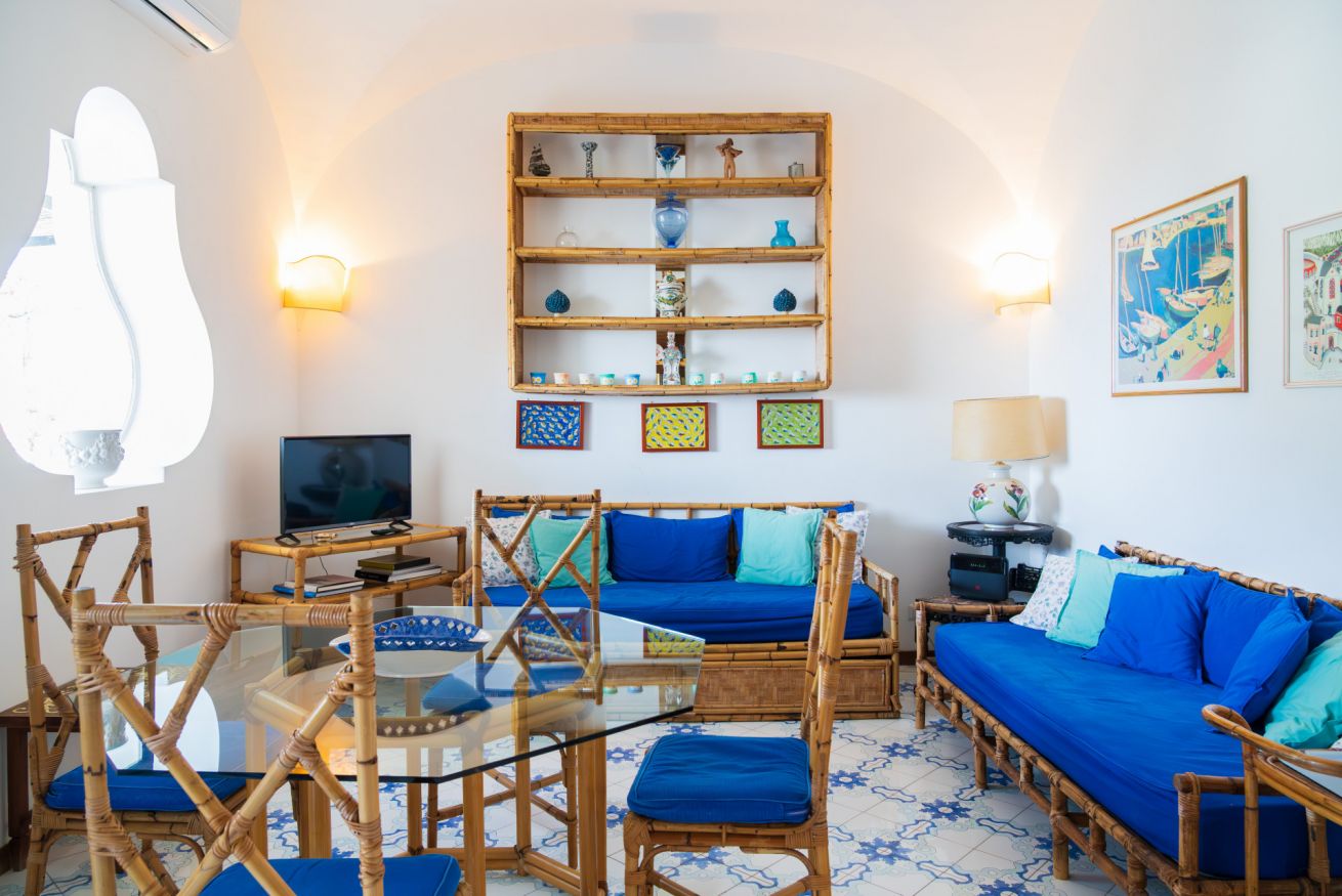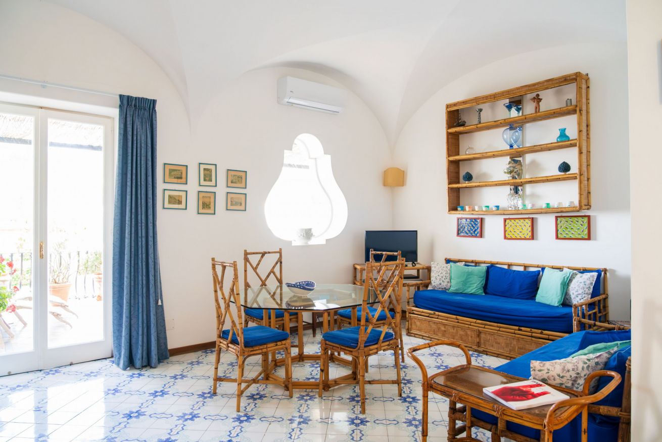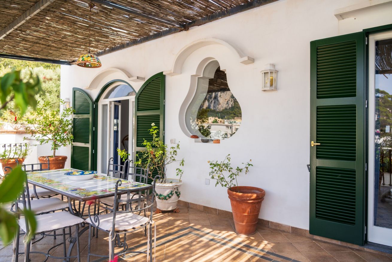 La proprietà rispecchia il tipico stile caprese con maioliche personalizzate e arredi in vimini.