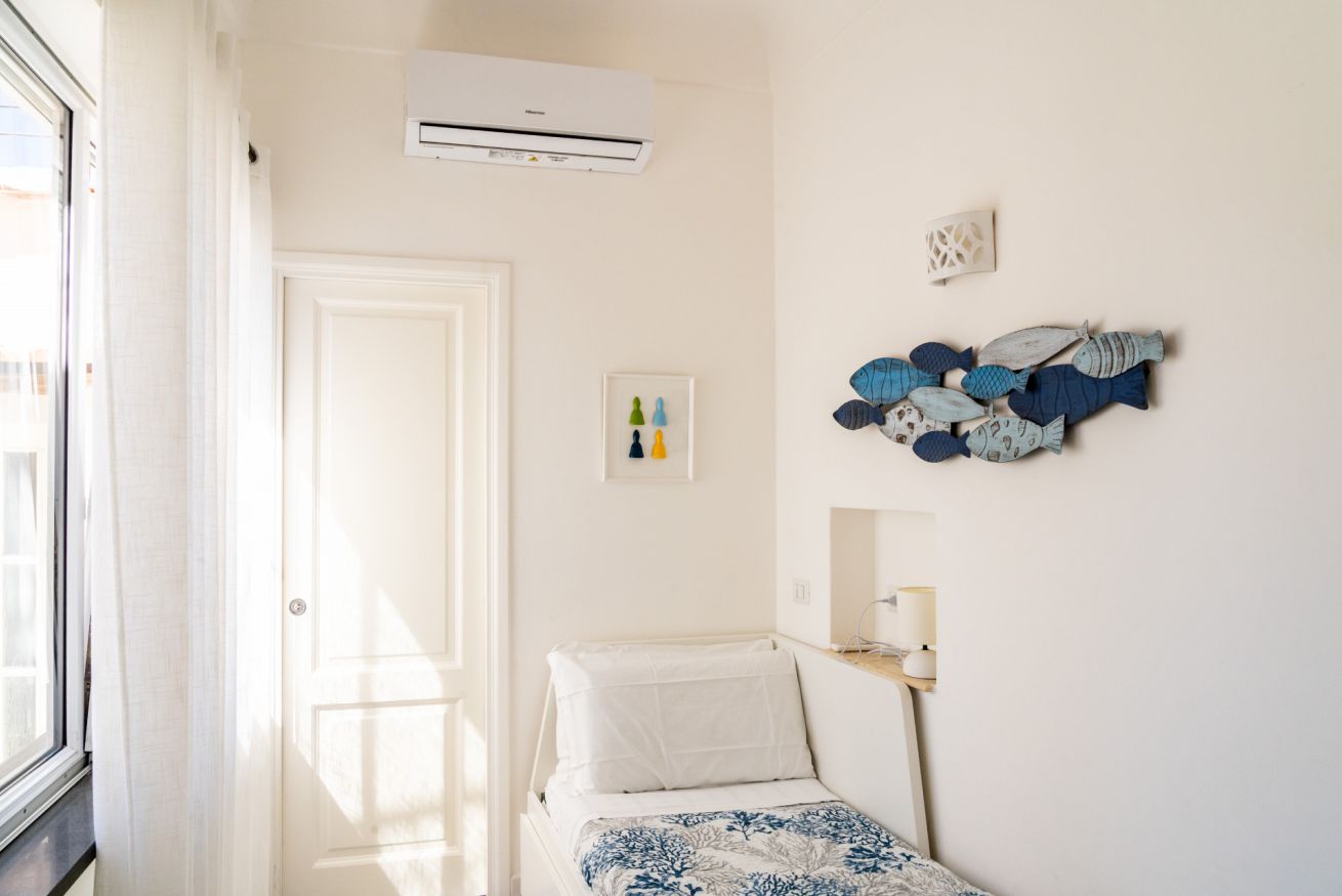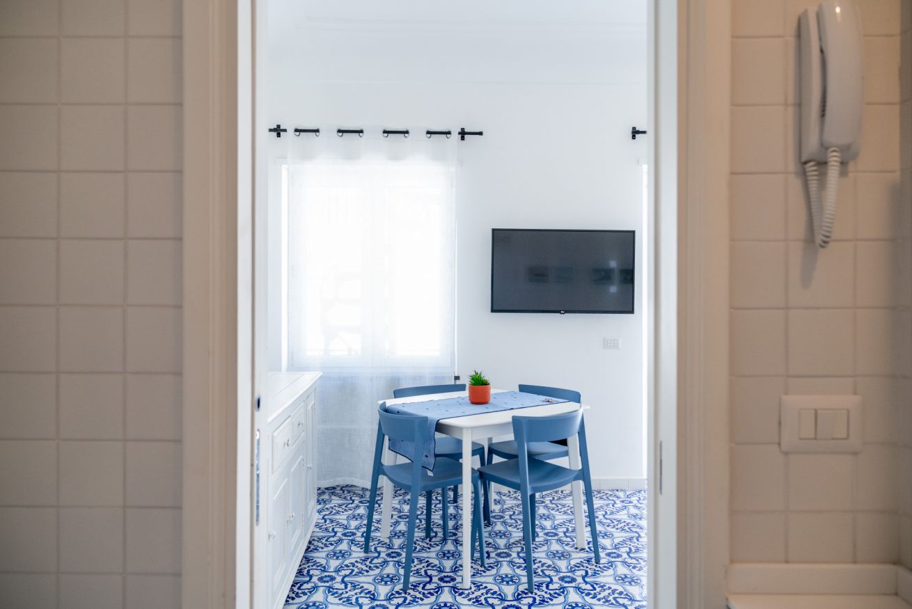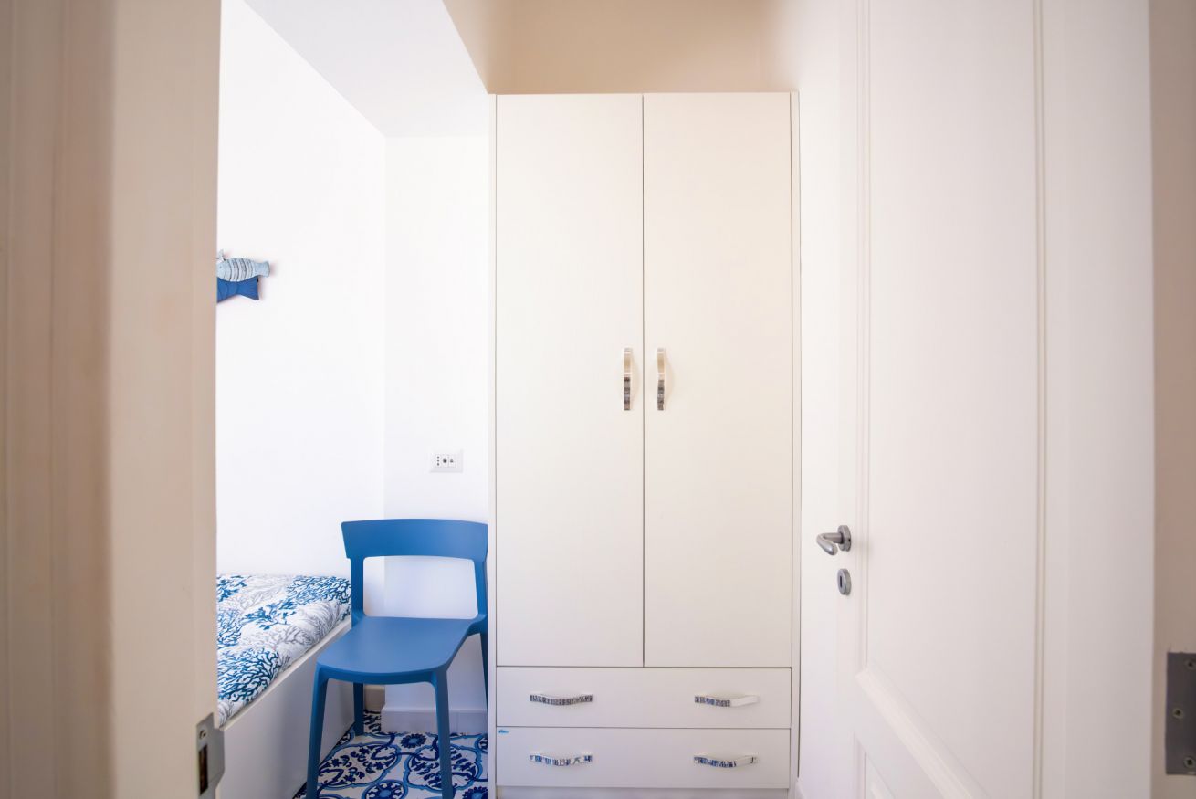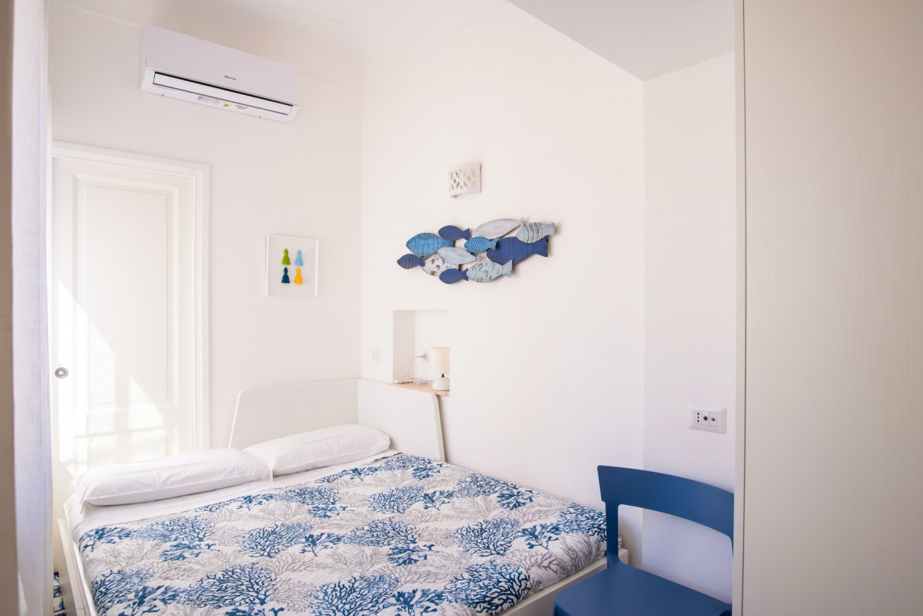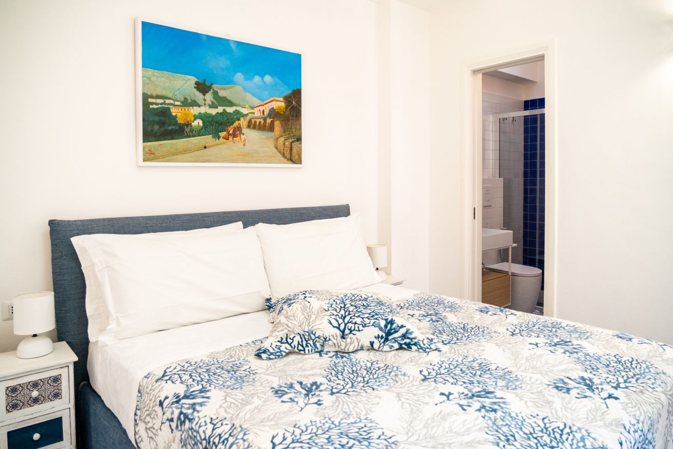 Appartamento situato in pieno centro, a pochissimi passi dalla piazzetta. L'appartamento è composto da una camera matrimoniale con bagno en-suite, camera singola con ulteriore letto estraibile e bagno en-suite, cucina e soggiorno con divano letto. Completa la proprietà un terrazzo di copertura arredato con divanetti e lettini prendisole accessibile con scala a chiocciola.