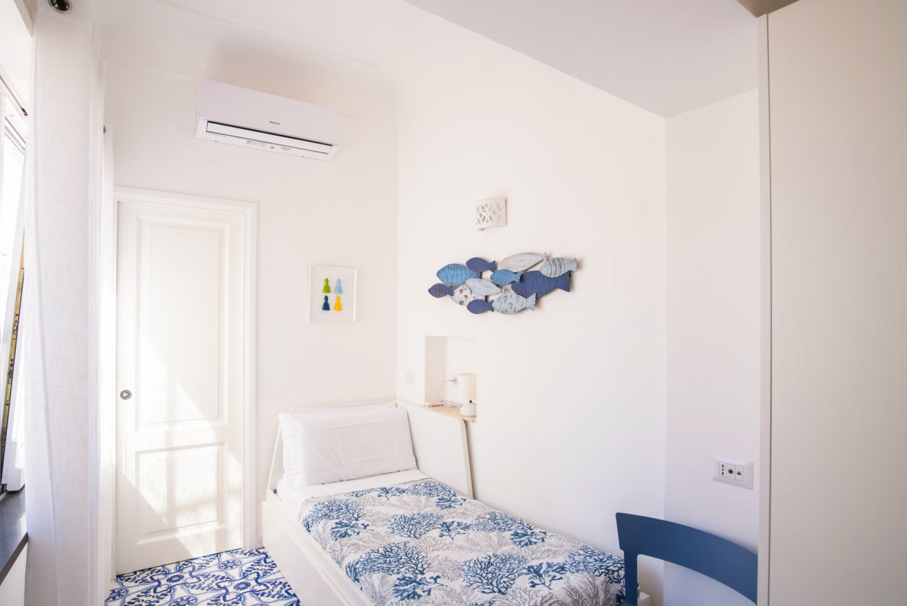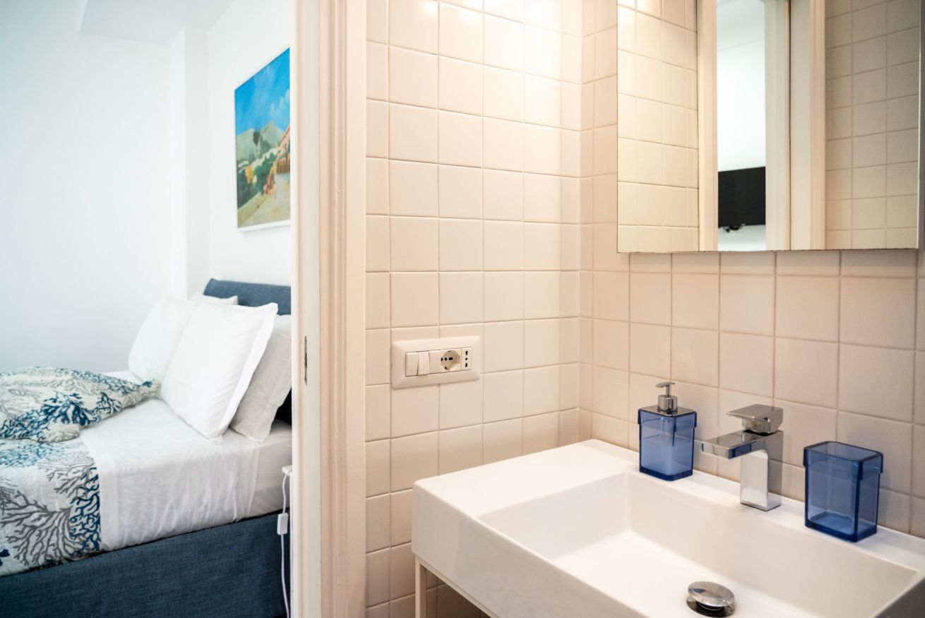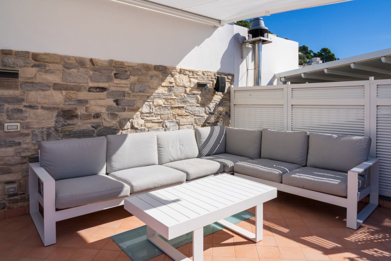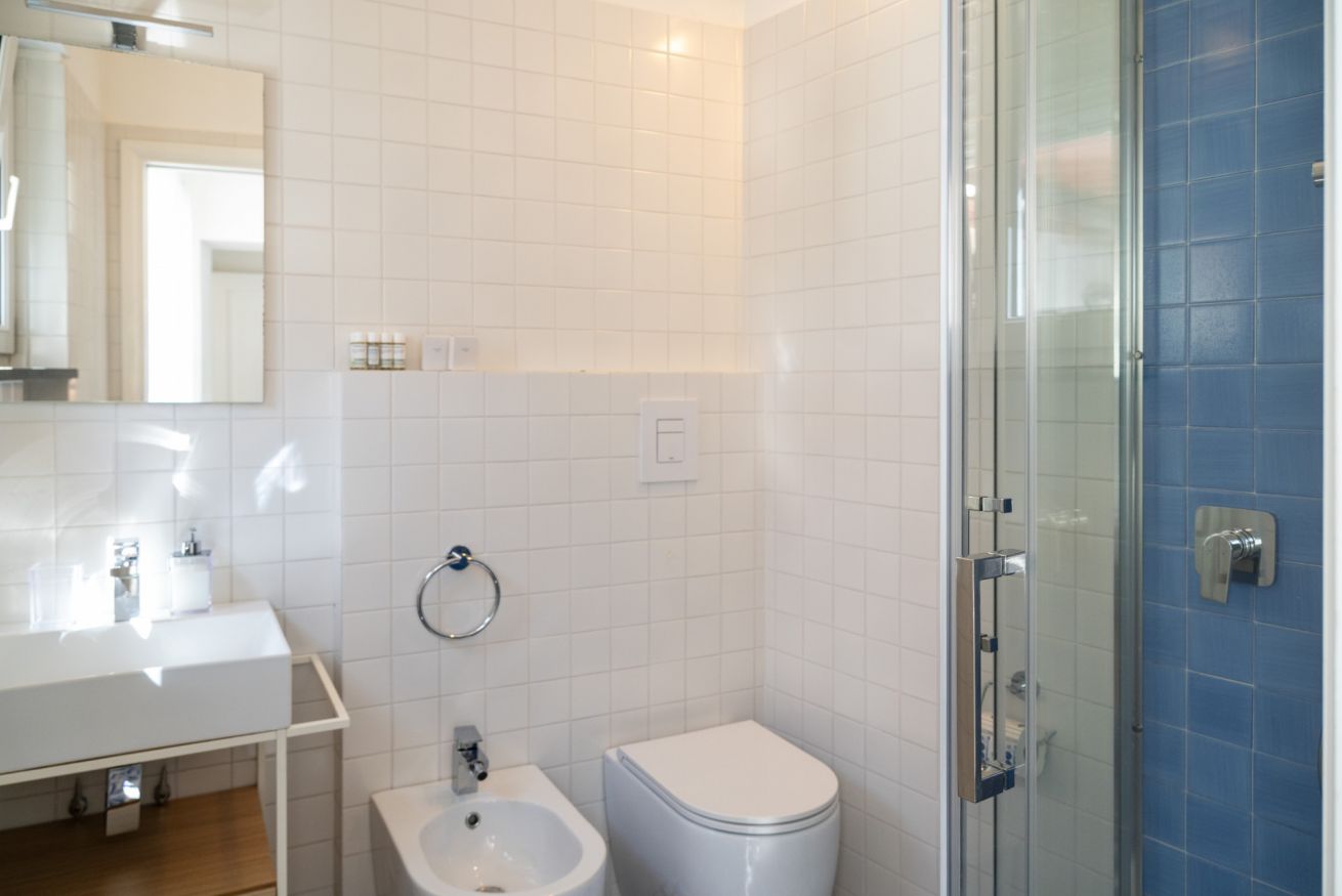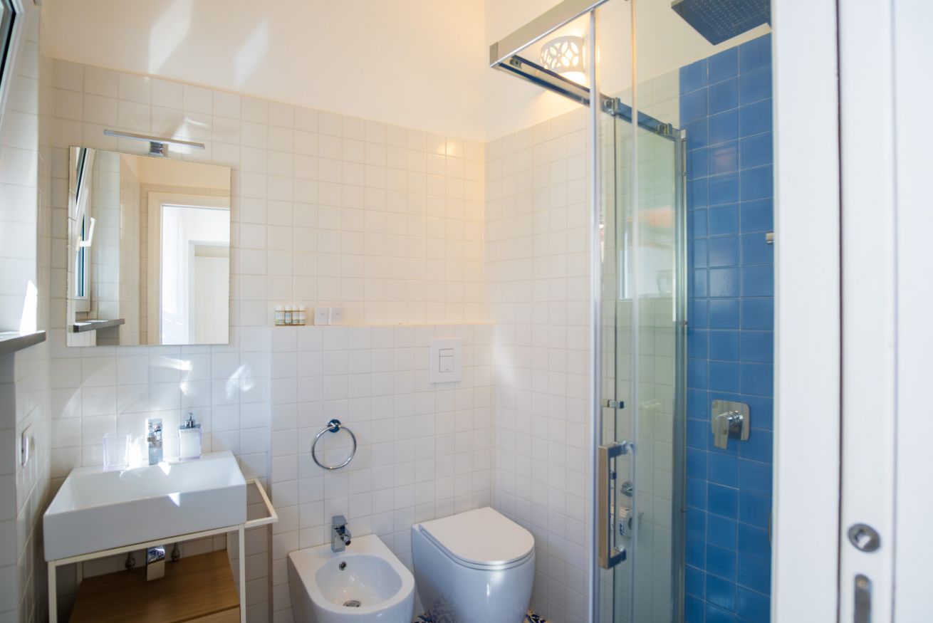 Appartamento situato in pieno centro, a pochissimi passi dalla piazzetta. L'appartamento è composto da una camera matrimoniale con bagno en-suite, camera singola con ulteriore letto estraibile e bagno en-suite, cucina e soggiorno con divano letto. Completa la proprietà un terrazzo di copertura arredato con divanetti e lettini prendisole accessibile con scala a chiocciola.