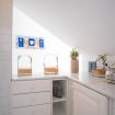 Ha due camere da letto con bagno e un’ampia soggiorno con cucina separata; è dotata: